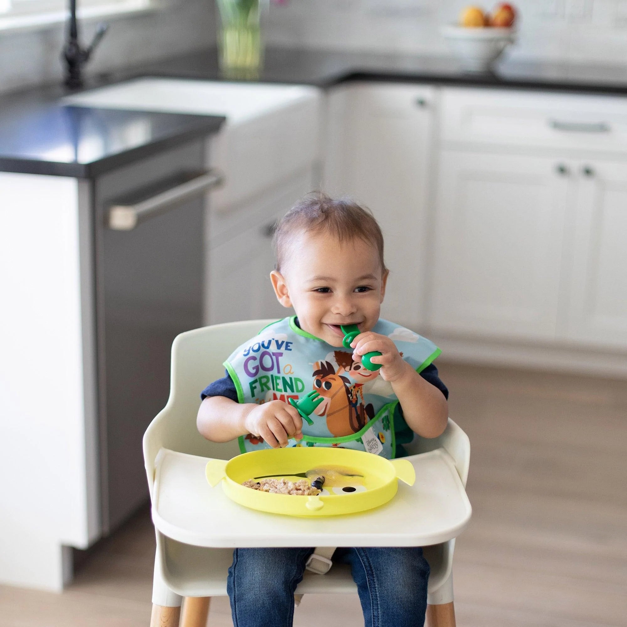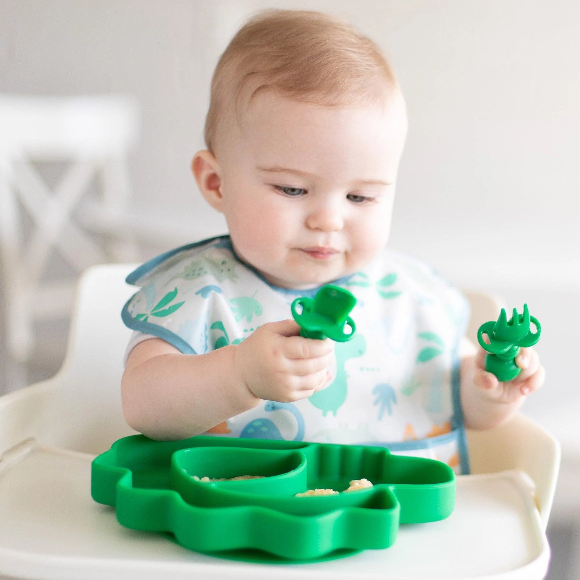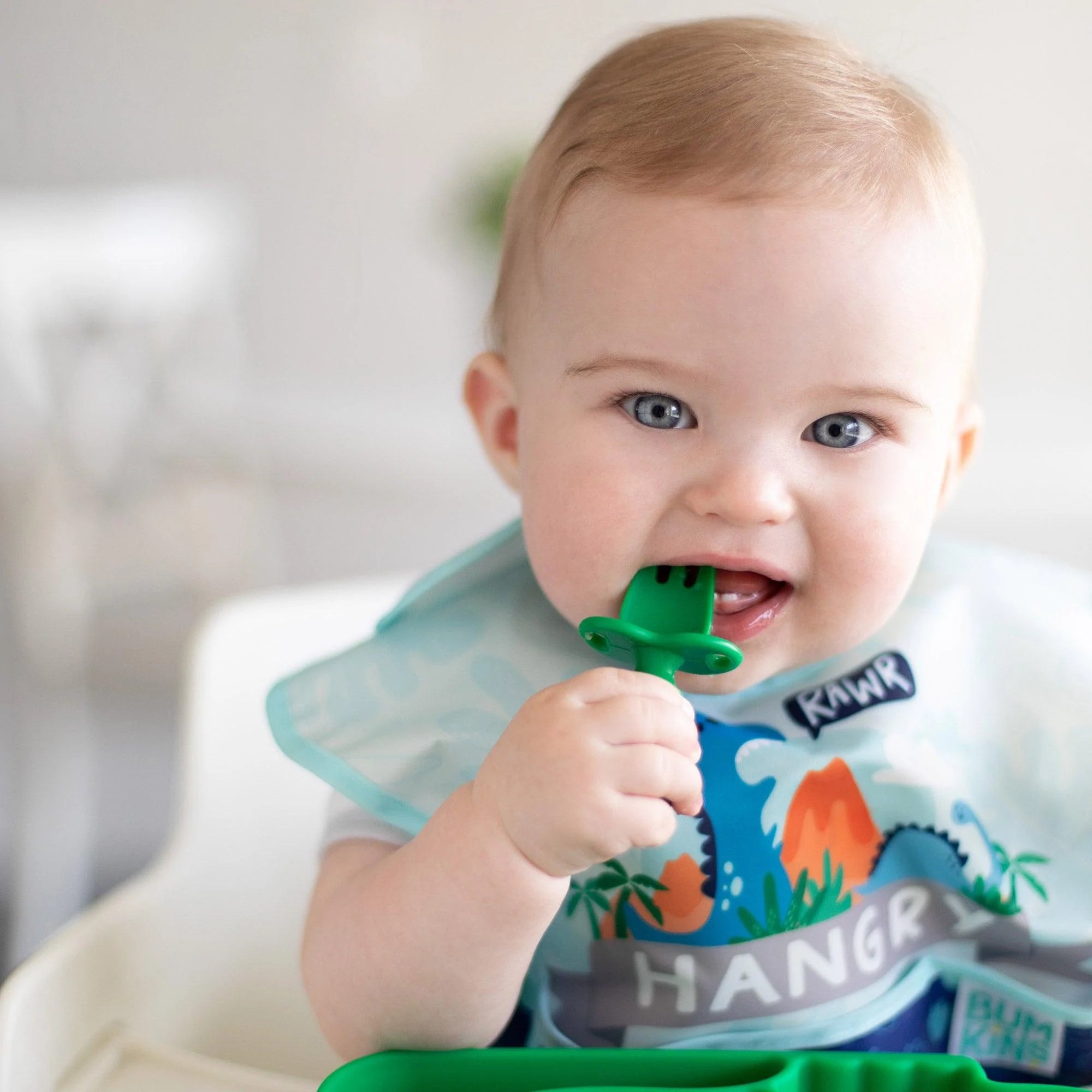 Our Chewtensils are intended for Stage 1 of baby-led weaning – introducing babies to the concept of holding a utensil and feeding themselves. We made Chewtensils from soft, textured, food-grade silicone that’s easy to grip and gentle on tender gums, with bendable heads for safety. The back of the spoon head has sensory bumps to stimulate gums. They’re perfect for dipping into puréed foods at the early part of baby led weaning. Chewtensils can be chewed on by younger babies before they’re ready to transition to silverware. They’re safe to use – made from 100% food-safe silicone.