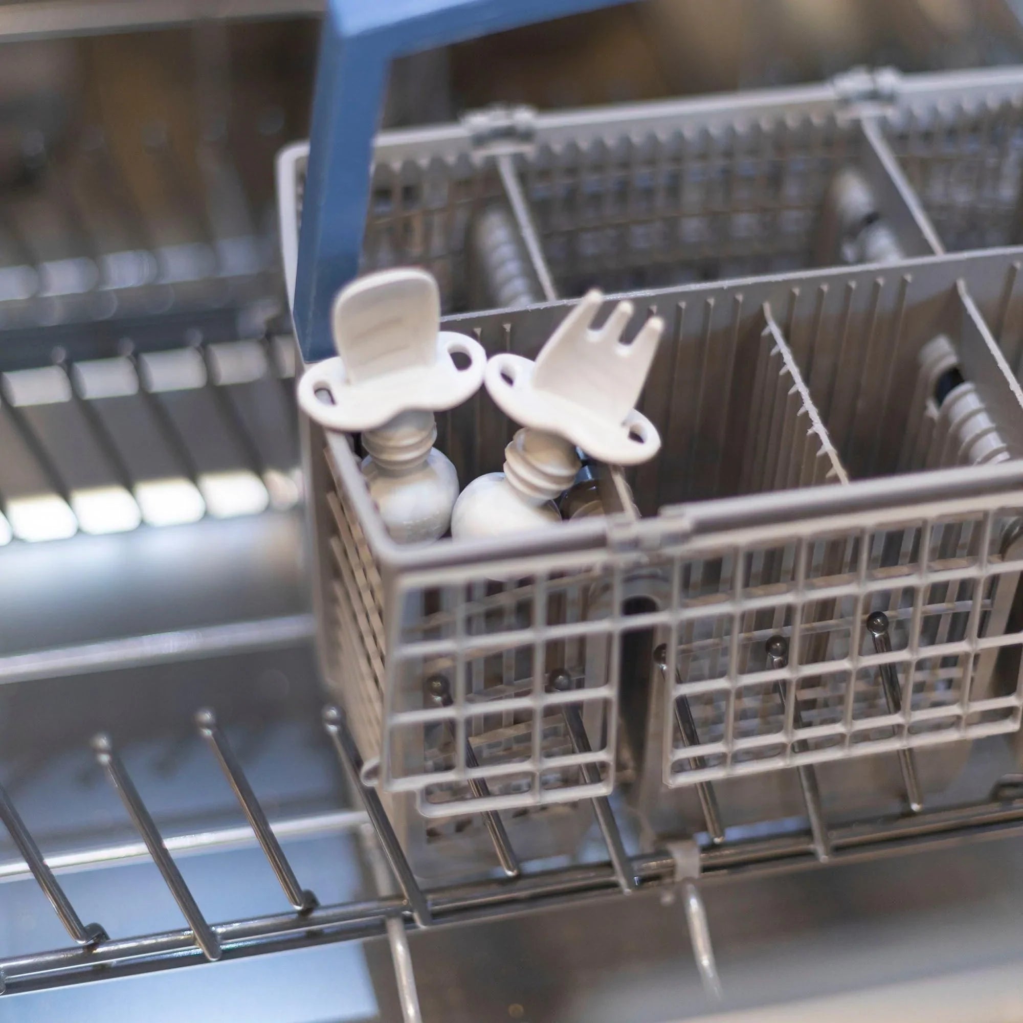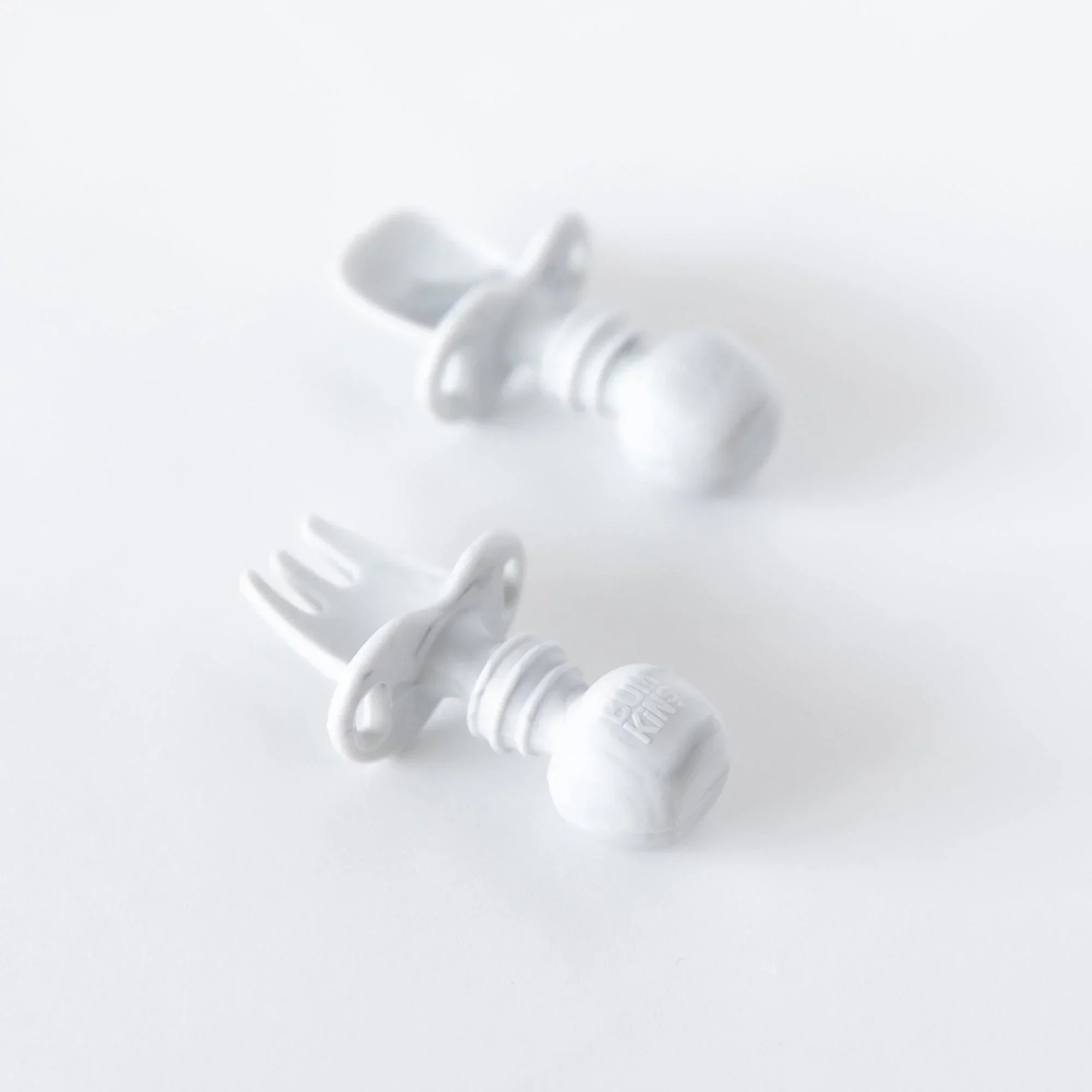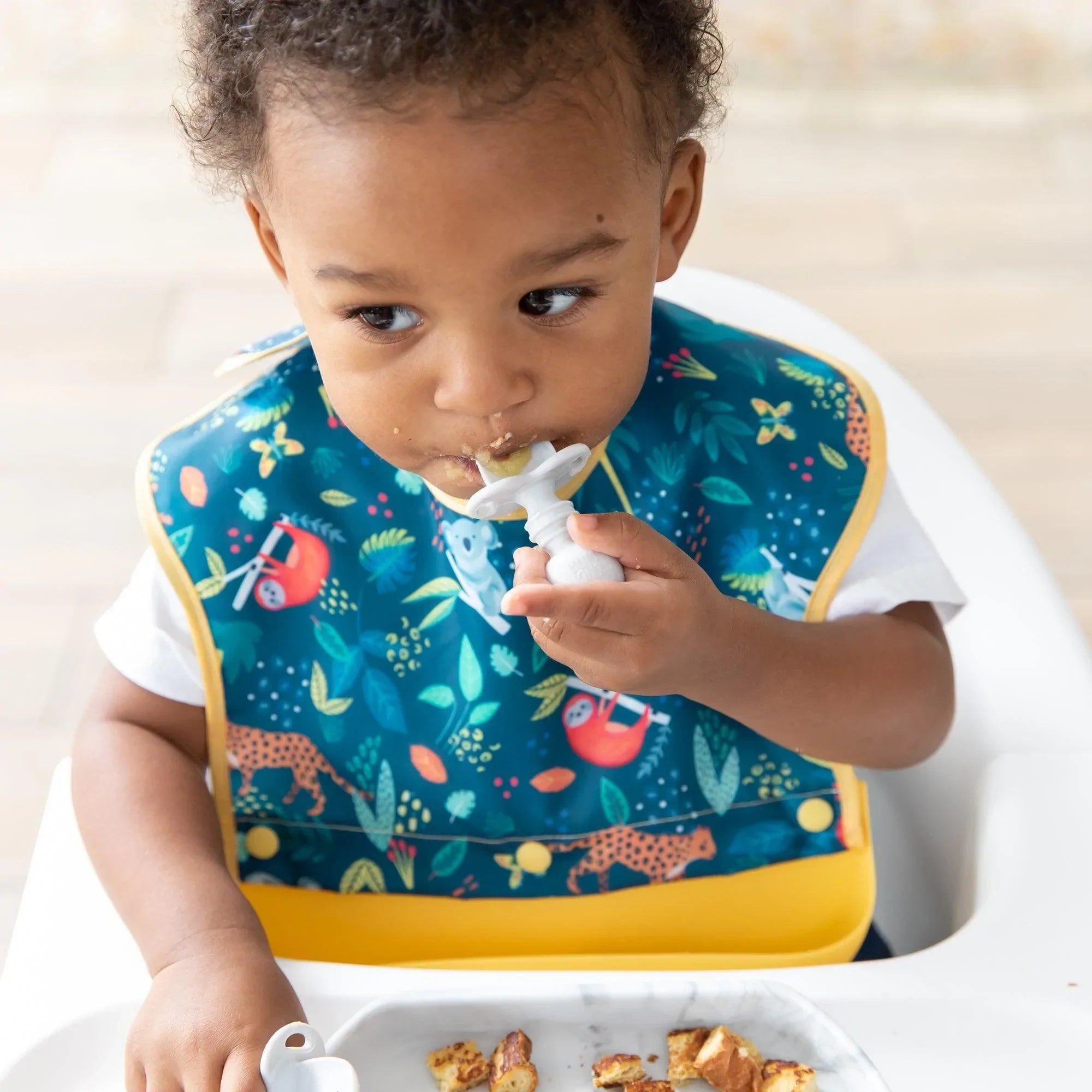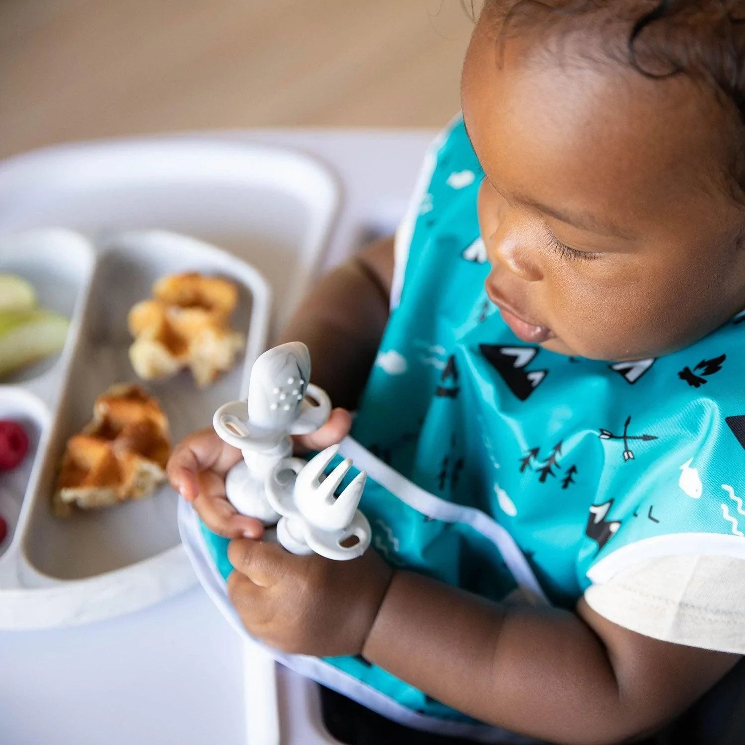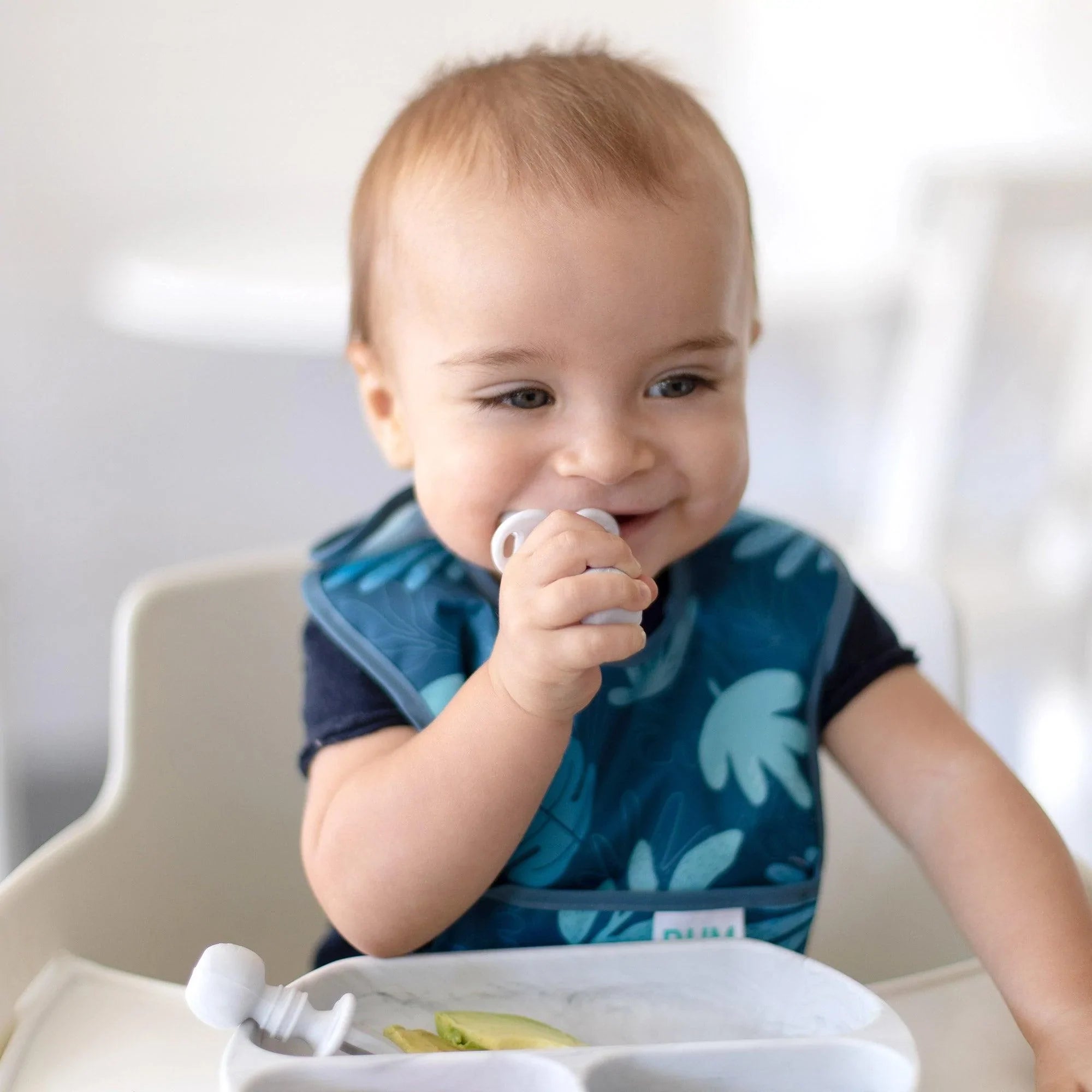 We designed Chewtensils for Stage 1 of baby-led weaning – introducing babies to the concept of holding a utensil and feeding themselves. Made from soft, textured, food-grade silicone that’s easy to grip and gentle on tender gums, with bendable heads for safety. The back of the spoon head has sensory bumps to stimulate gums. They’re perfect for dipping into puréed foods at the early part of baby led weaning. Chewtensils can be chewed on by younger babies before they’re ready to transition to silverware. They’re safe to use – made from 100% food-safe silicone.