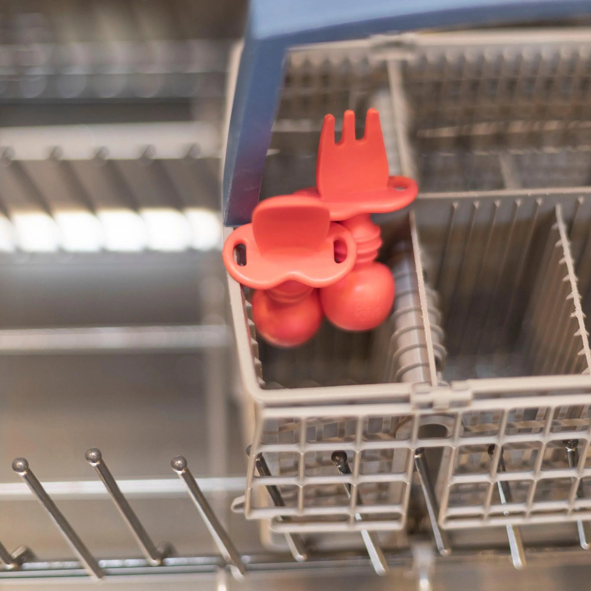 Our Chewtensils are intended for Stage 1 of baby-led weaning – introducing babies to the concept of holding a utensil and feeding themselves. We made Chewtensils from soft, textured, 100% food-safe silicone that’s easy to grip and gentle on tender gums, with bendable heads for safety. They’re perfect for dipping into puréed foods at the early part of baby led weaning. Chewtensils can be chewed on by younger babies before they’re ready to transition to silverware. The back of the spoon head has sensory bumps to stimulate gums.