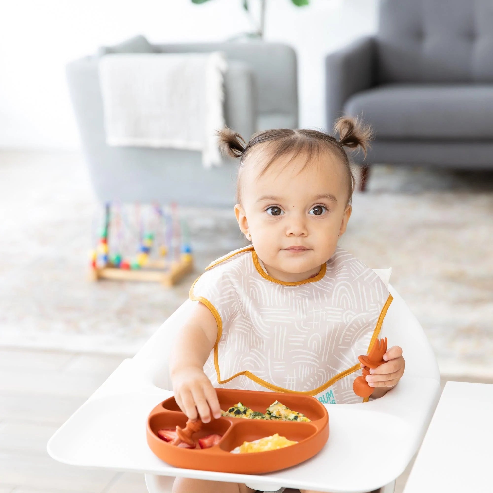 This Silicone Grip Dish in Clay will stay grounded during mealtime! The Silicone Grip Dish is perfect for little ones learning to self-feed. This sectioned plate is sized for toddler portions and has a strong suction base that ensures the dish stays put on highchair trays or tables. The dish is made with 100% food-safe platinum silicone that’s durable and resists stains and bacteria. Silicone can withstand high to low temperatures (from 400℉ down to -40℉), allowing the dish to go from the oven or microwave into the freezer for a quick cool down.