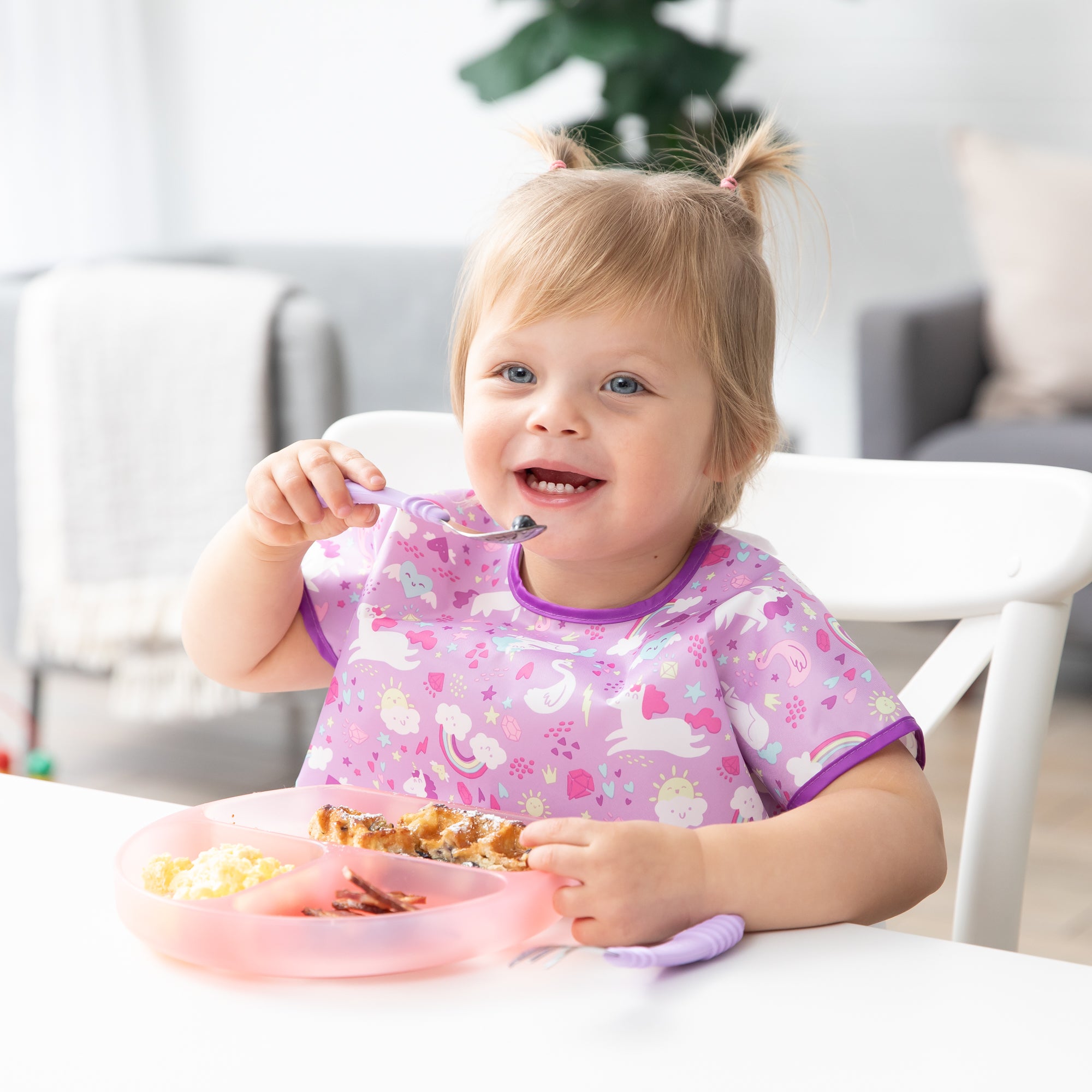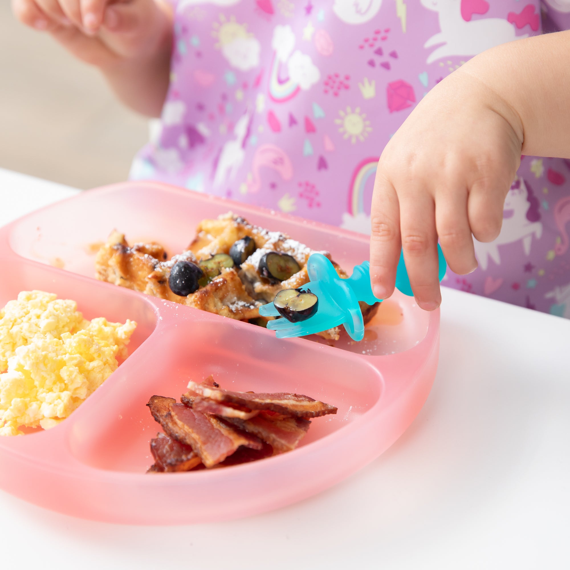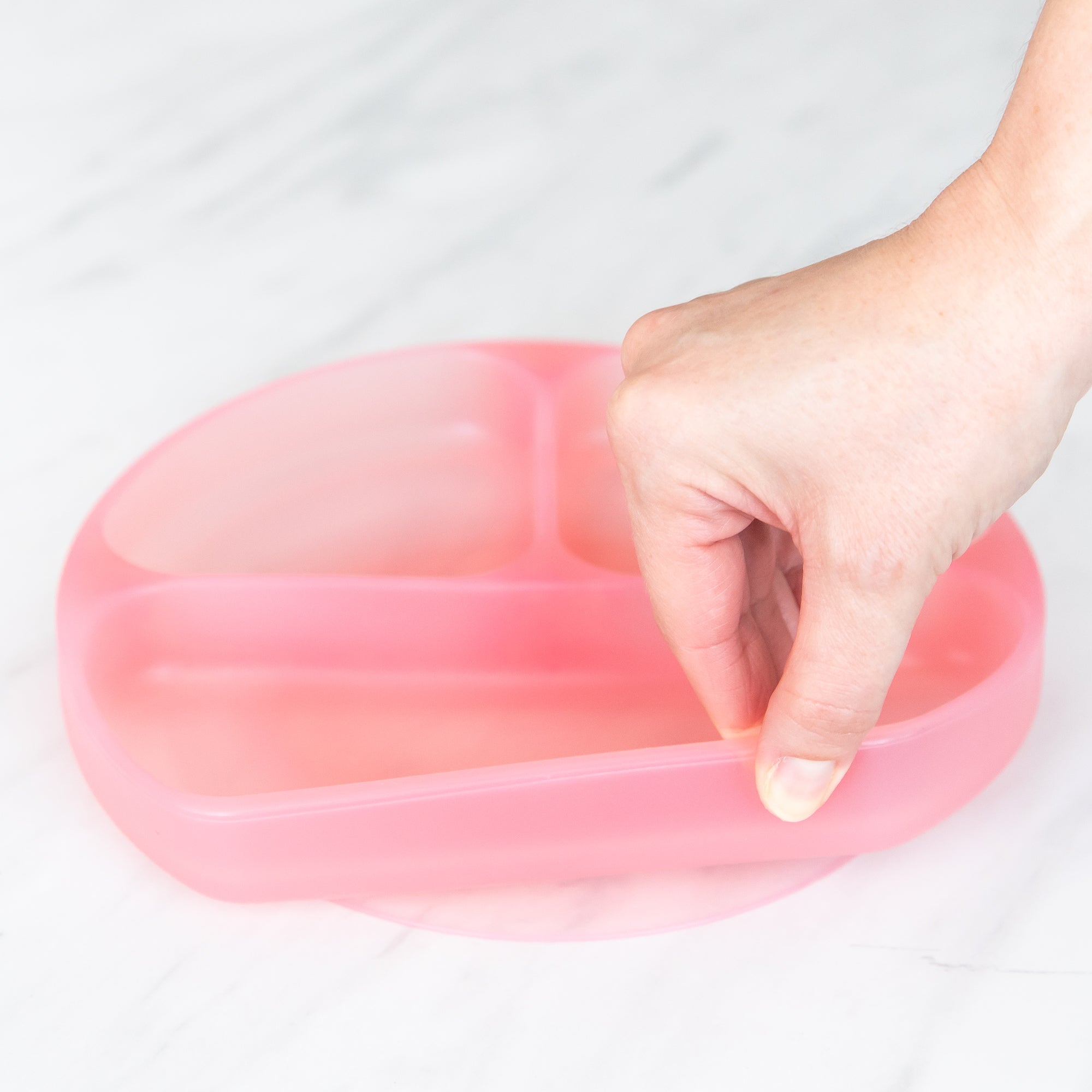 Move over jelly beans, there's a new Jelly in town! Bumkins Pink Jelly Silicone Grip Dish is perfect for little ones learning to self-feed. The divided plate is sized right for baby and toddler portions and it fits and sticks to most highchair trays and tables. A strong suction base ensures the dish stays put – even with the most aggressive toddler! A straight side allows kids to belly up to the plate, allowing less of a mess. Silicone can withstand low and high temperatures, easily transitioning from the refrigerator or freezer to the oven or microwave. Made with 100% food-safe, premium LFGB silicone that’s durable, stain and bacteria-resistant.