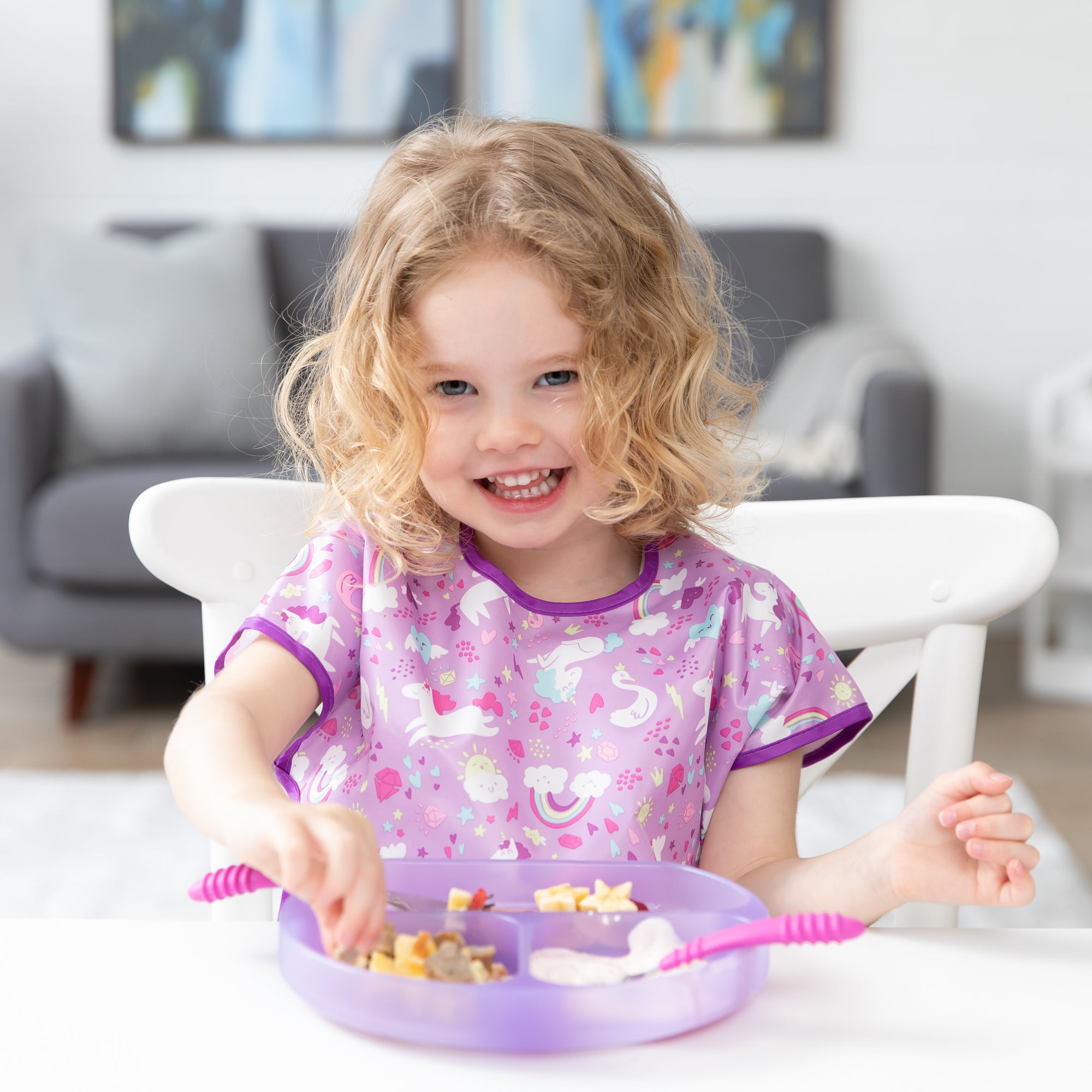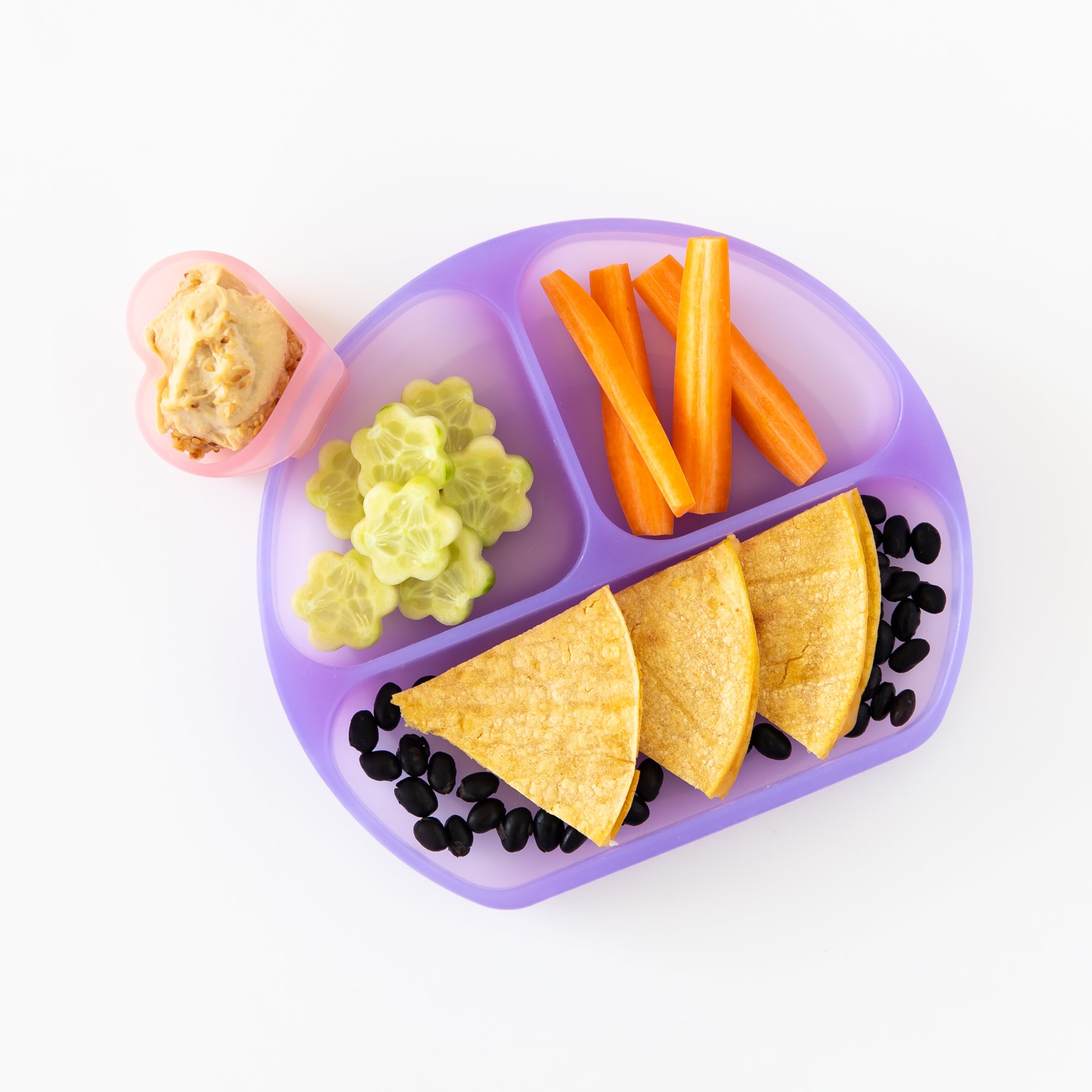 Move over jelly beans, there's a new Jelly in town! Bumkins Purple Jelly Silicone Grip Dish is perfect for little ones learning to self-feed. The divided plate is sized right for baby and toddler portions and it fits and sticks to most highchair trays and tables. A strong suction base ensures the dish stays put – even with the most aggressive toddler! A straight side allows kids to belly up to the plate, allowing less of a mess. Silicone can withstand low and high temperatures, easily transitioning from the refrigerator or freezer to the oven or microwave. Made with 100% food-safe, premium LFGB silicone that’s durable, stain and bacteria-resistant.