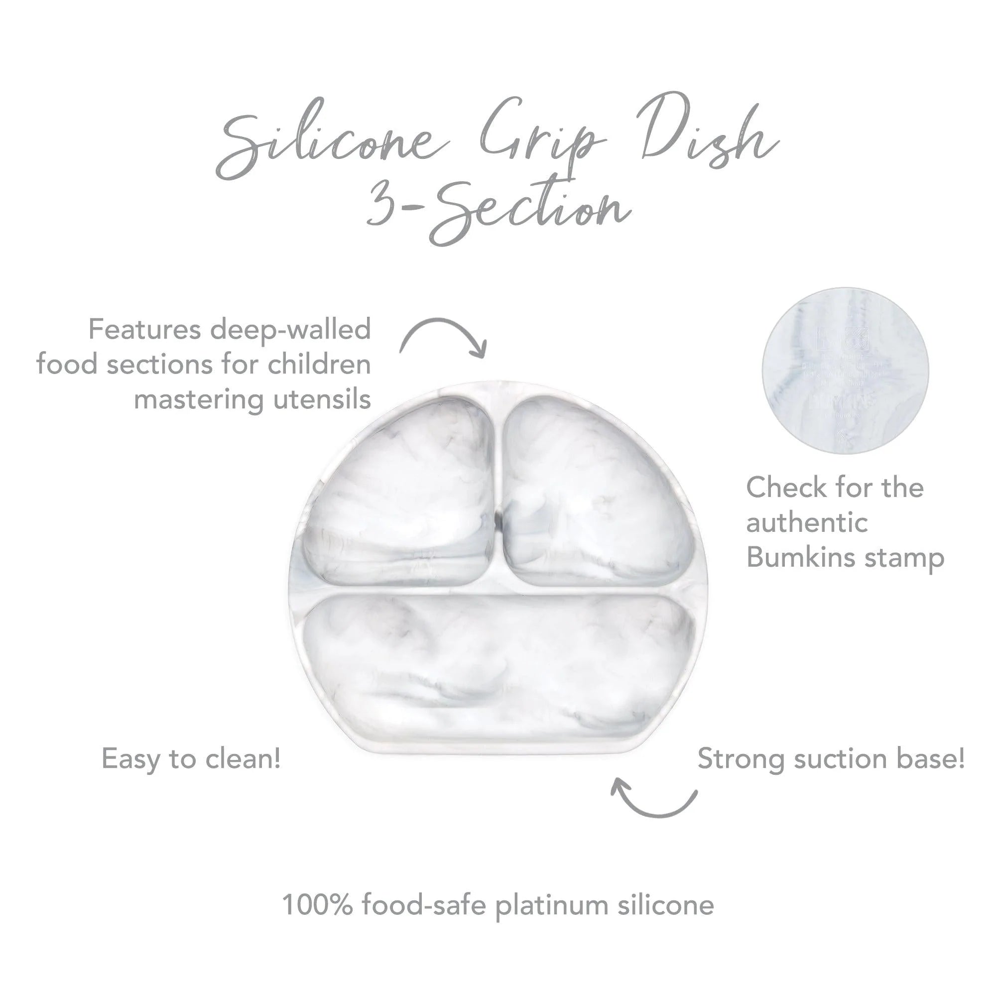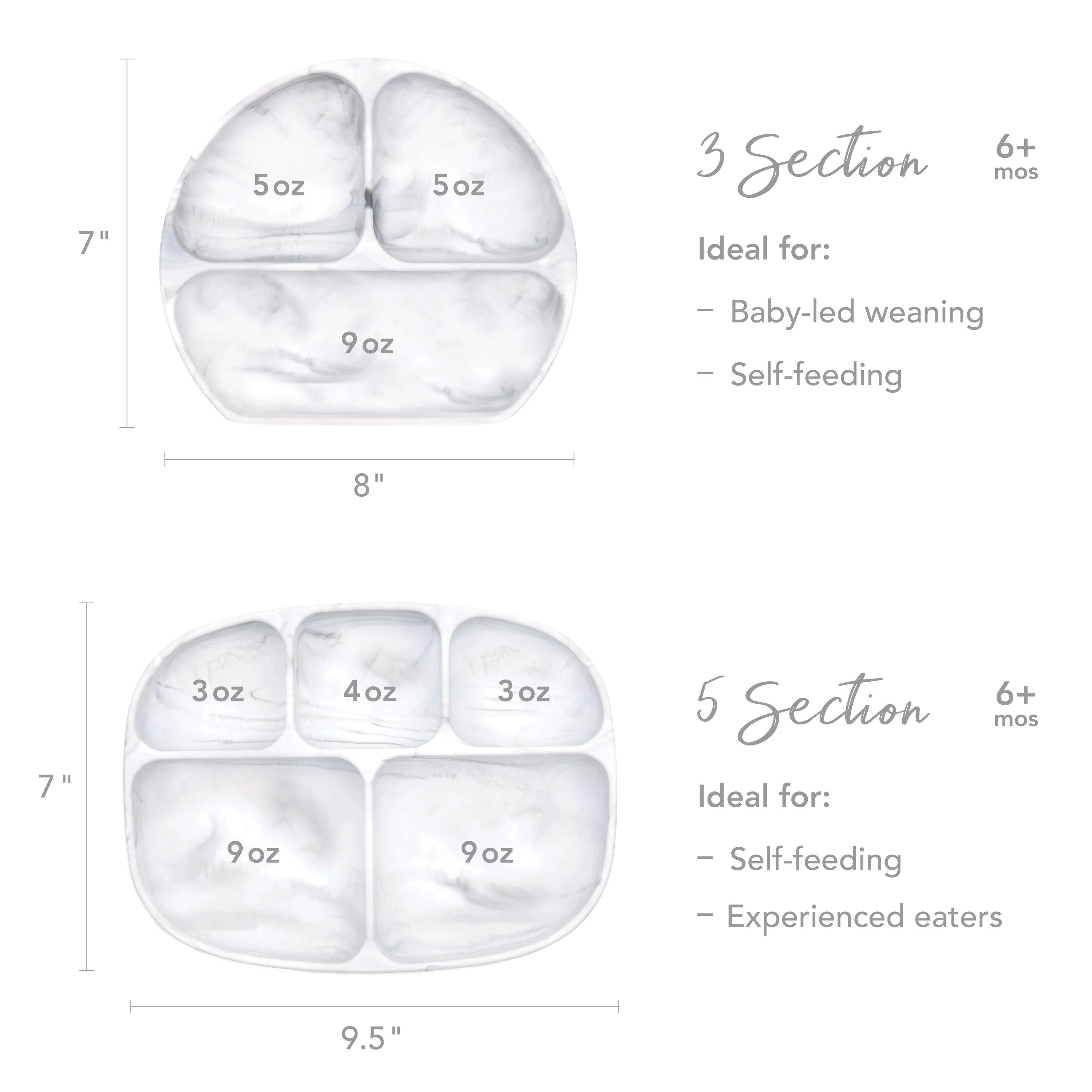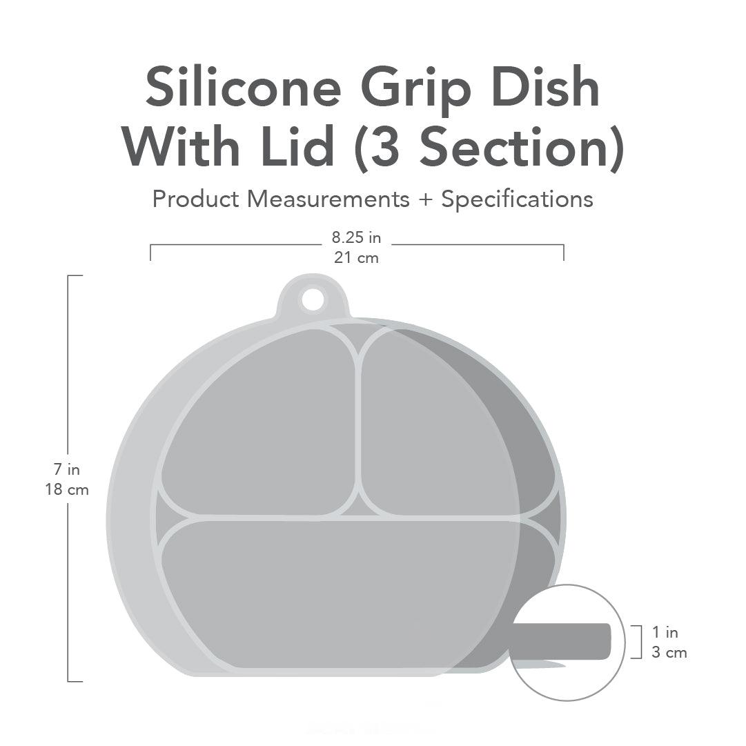 Our Silicone Grip Dish is perfect for little ones learning to self-feed. Now with a leak-resistant lid for storing leftovers or prepping meals! Write on the lid, labeling leftovers; just use a washable, dry-erase or wet-erase marker. The divided plate is perfectly sized for toddler portions. A strong suction base ensures the dish stays put – even with the most aggressive toddler! Great for use on highchair trays or tables. A straight side allows kids to belly up to the plate, allowing less of a mess. The Grip Dish and Lid can be safely put in the microwave, oven (up to 400°F), freezer, or dishwasher. Made with 100% food-safe silicone that’s durable, stain and bacteria resistant.