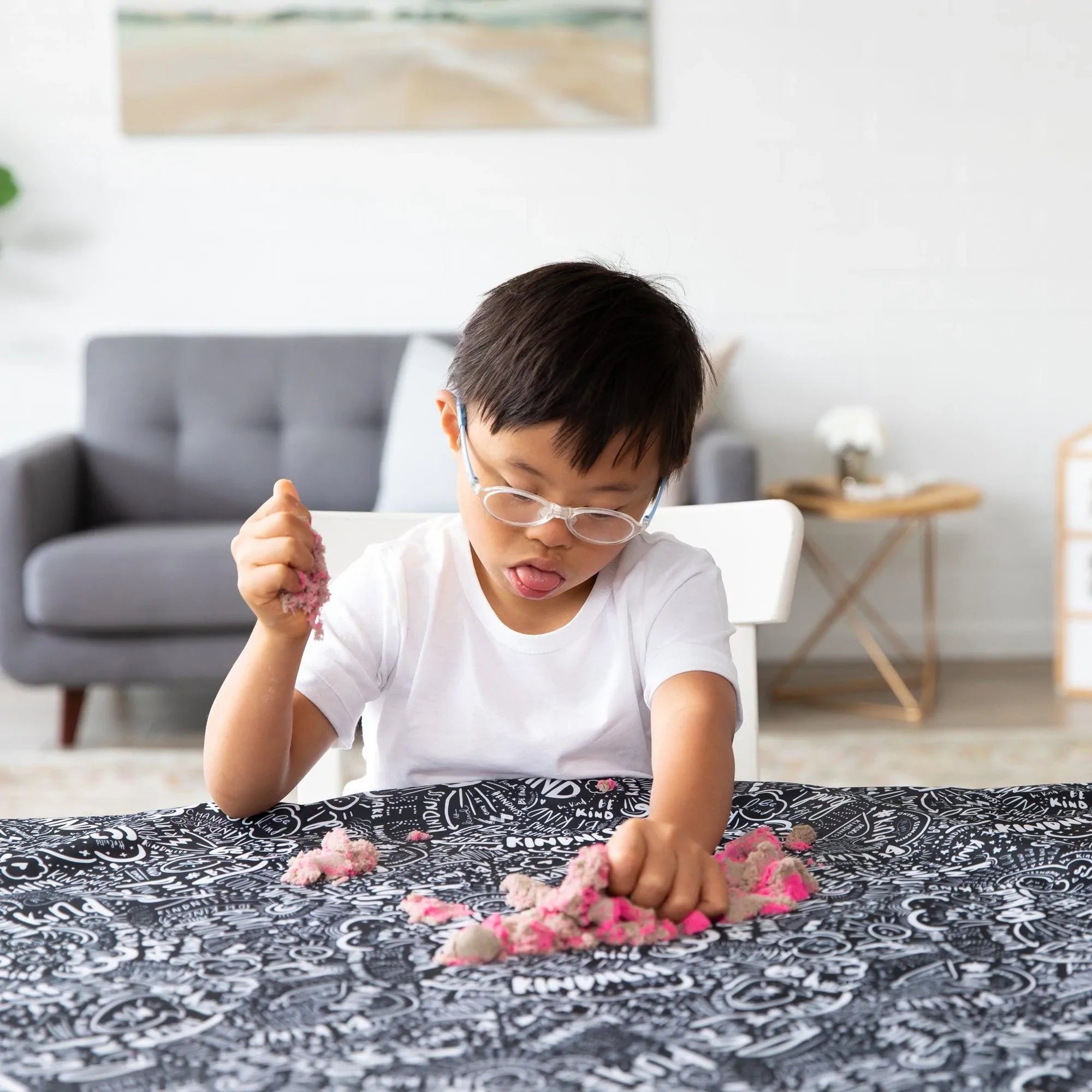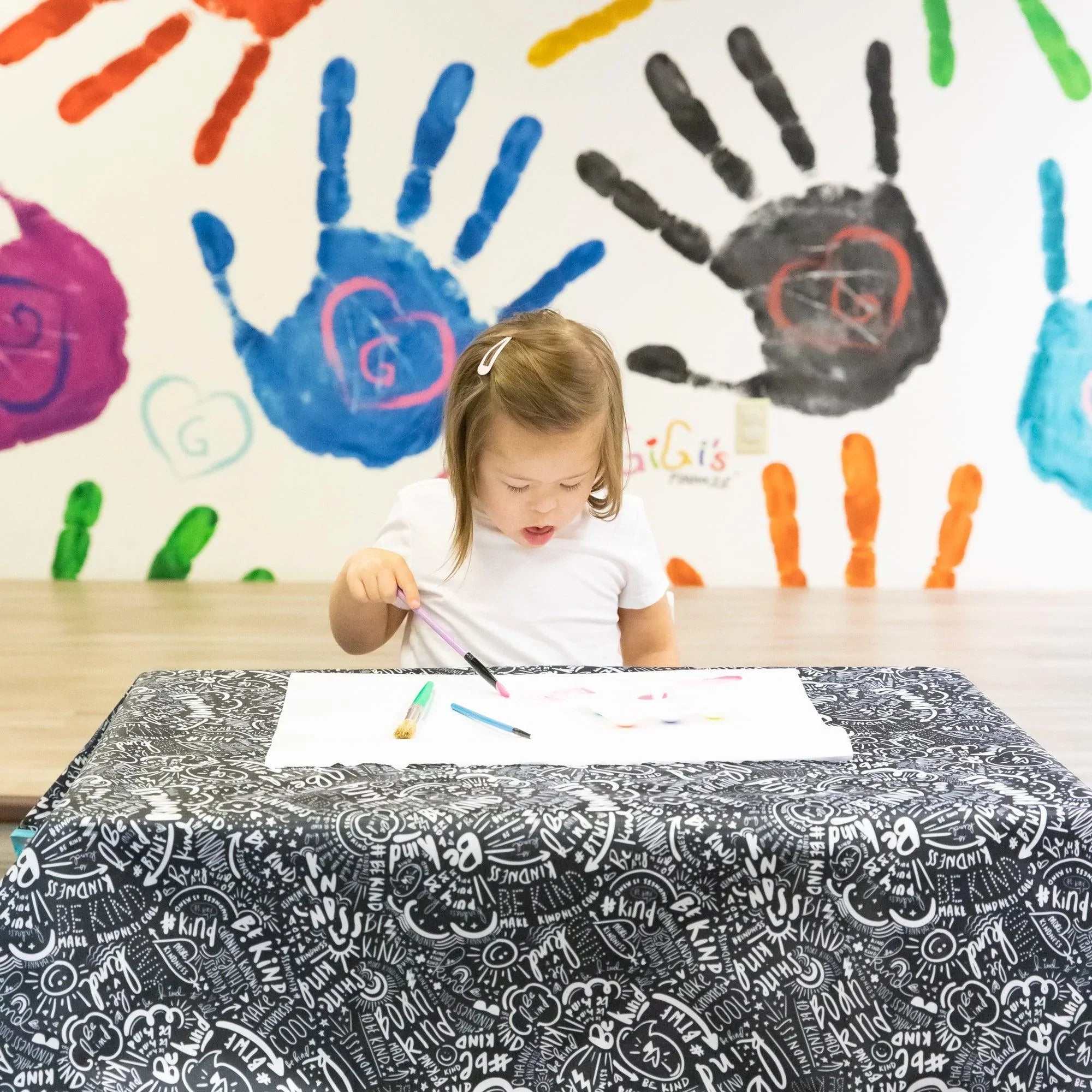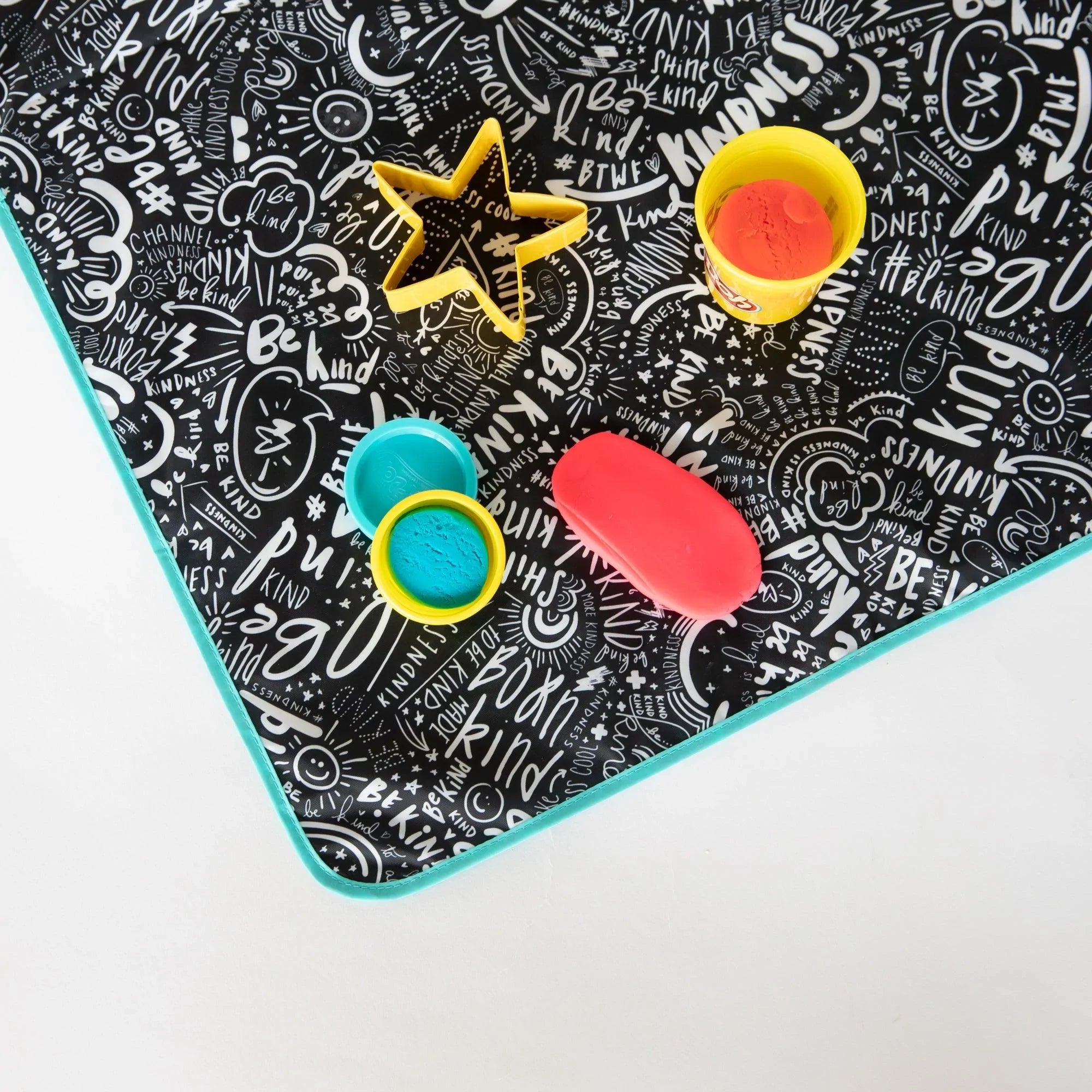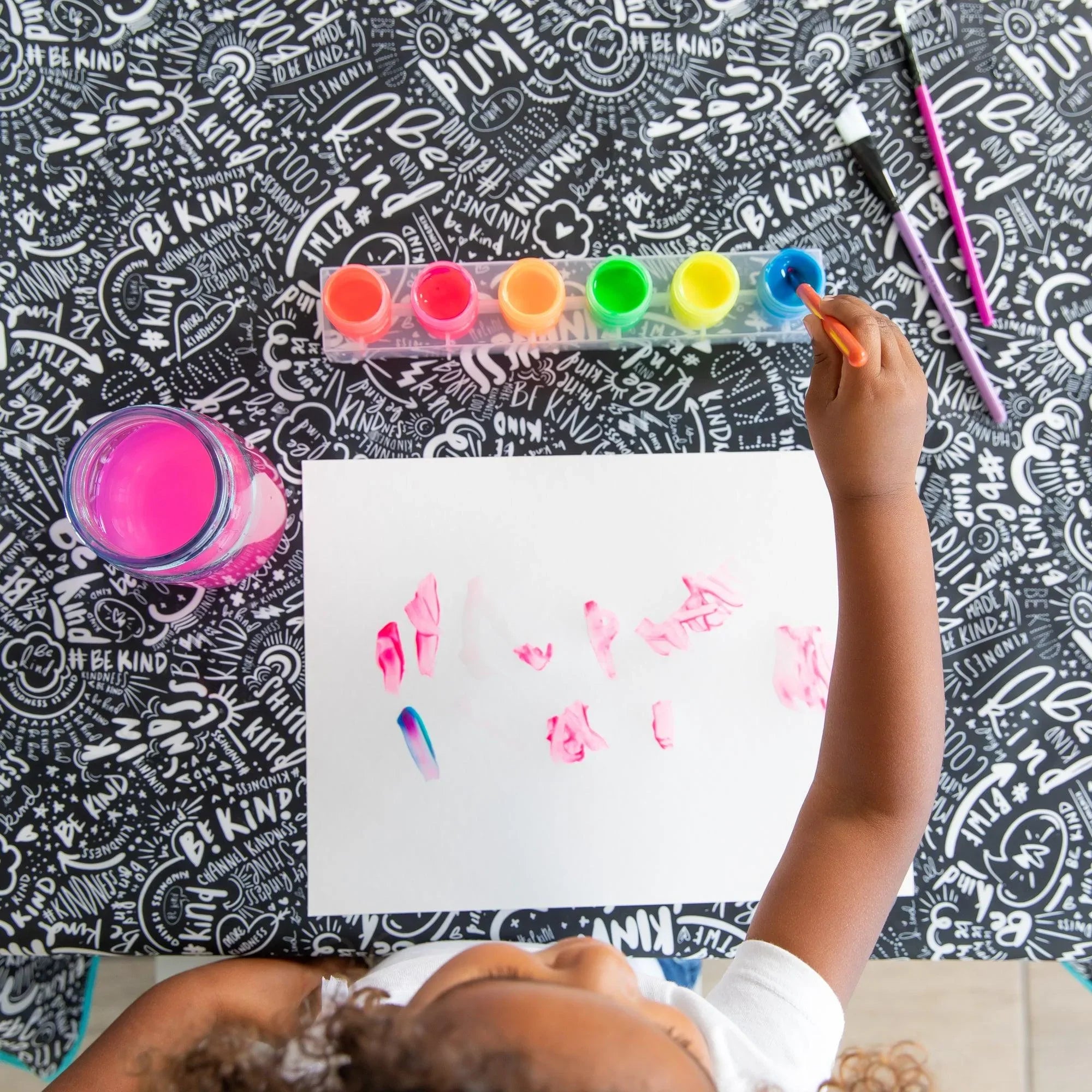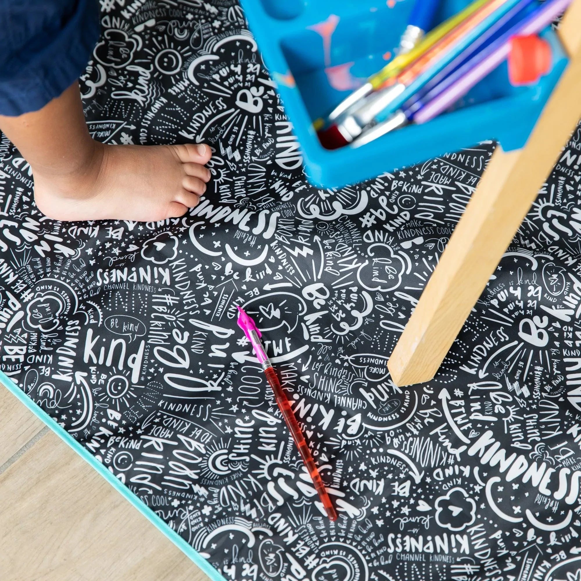 Protect floors and tables while promoting kindness with a Born This Way Foundation by Bumkins Splat Mat! It’s made to protect your floors and tables from mealtime spills and playtime messes. Not just for underneath highchairs. Use it on floors, on tables or outside. And, it’s great for art projects. Made from the same easy-wipe waterproof and stain-resistant fabric as Bumkins award-winning SuperBib. The single-ply construction means no worrying about icky stuff growing between layers of fabric. A generous 42”x42” yet lightweight, it takes up less space in your bag, so you can take it where you need it! Wipeable and machine washable for easy cleaning so you can use it over and over again!