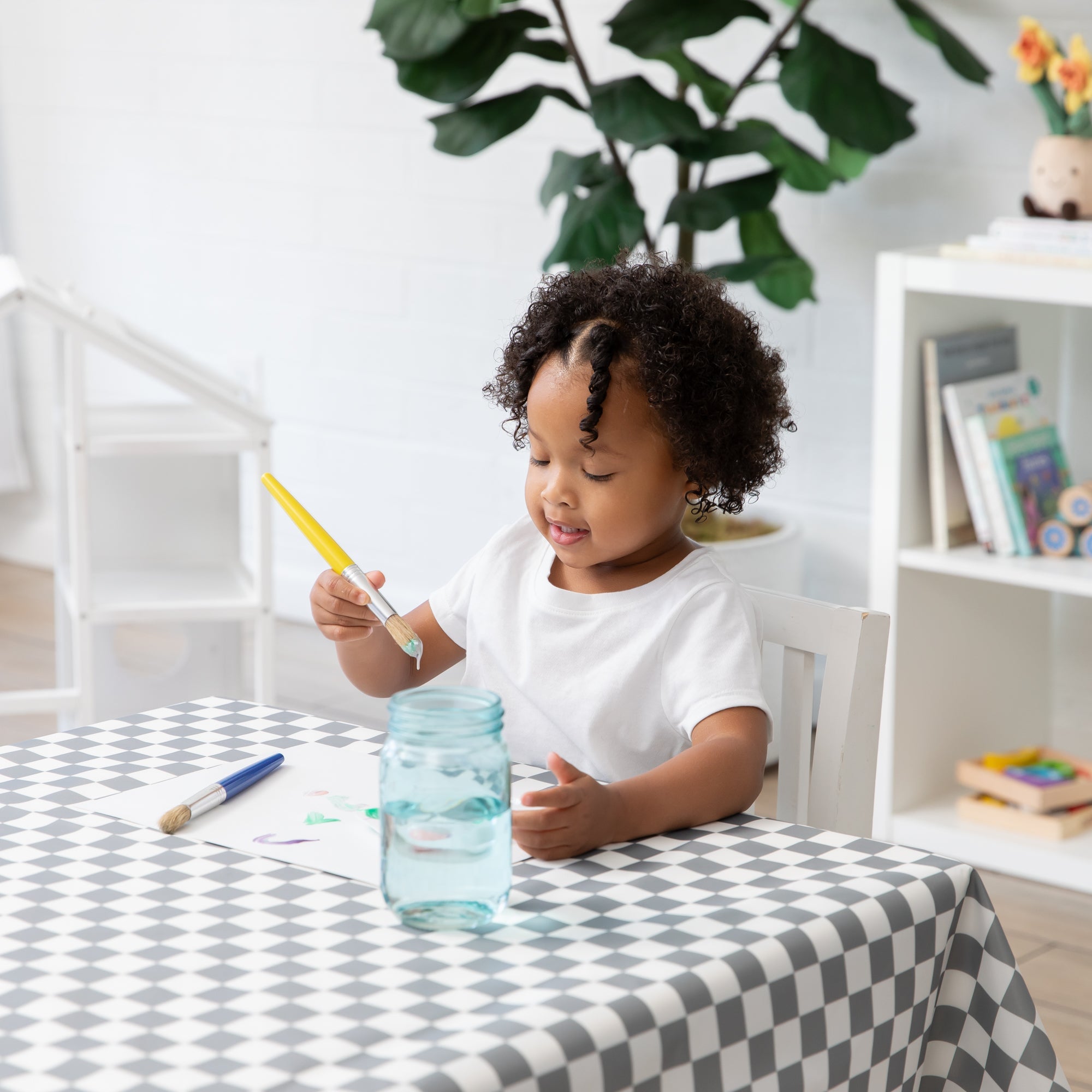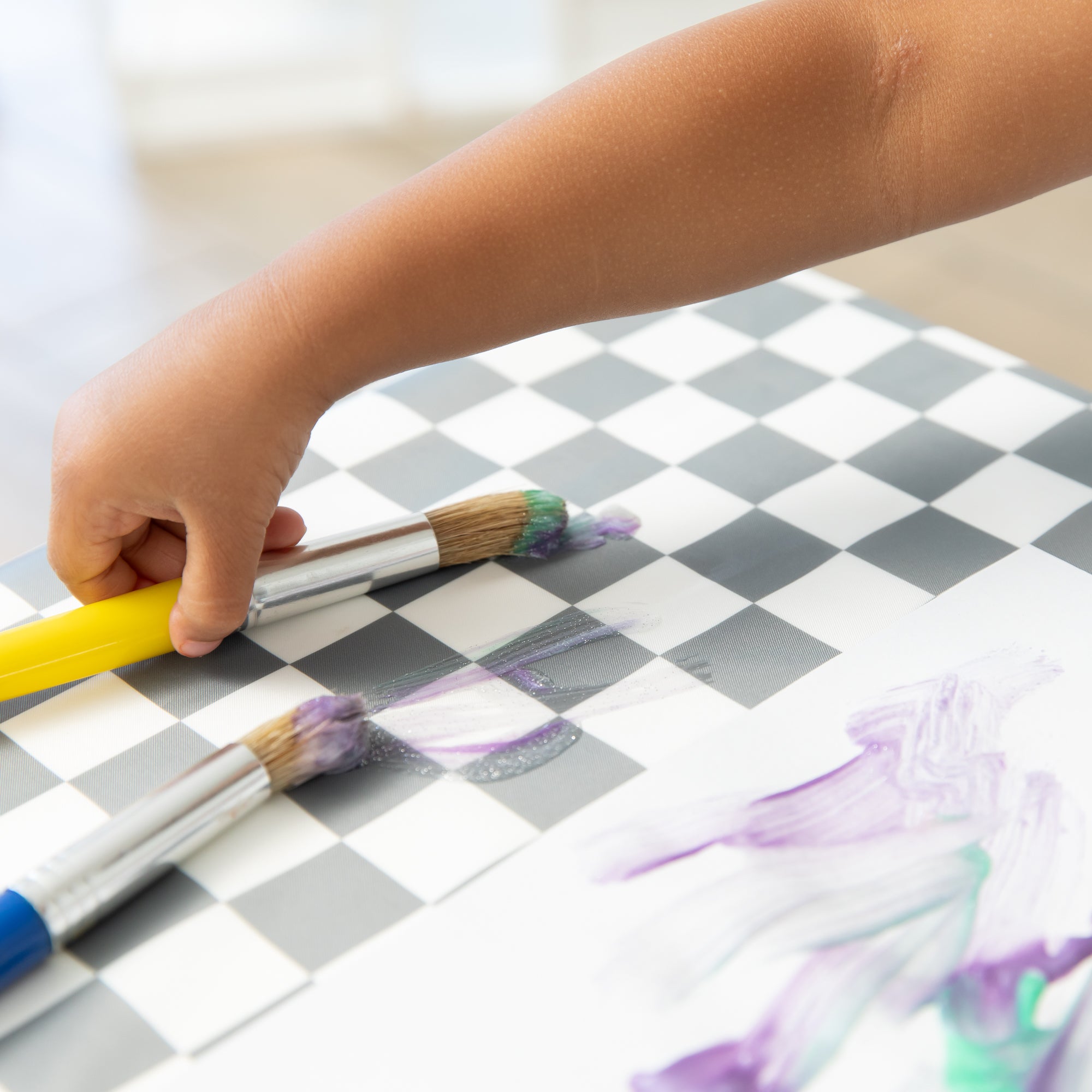 Keep your little ones messes in check with the Splat Mat that keeps floors and tabletops clean! Our splat mats are made to protect your floors and tables from mealtime spills and playtime messes. Not just for underneath highchairs. Use it on floors, on tables, or outside. And, it’s great for art projects. Made from the same easy-wipe waterproof and stain-resistant fabric as Bumkins’ award-winning SuperBib. The single-ply construction means no worrying about icky stuff growing between layers of fabric. A generous 42”x42” yet lightweight, it takes up less space in your bag, so you can take it where you need it! Wipeable and machine washable for easy cleaning so you can use it over and over again!