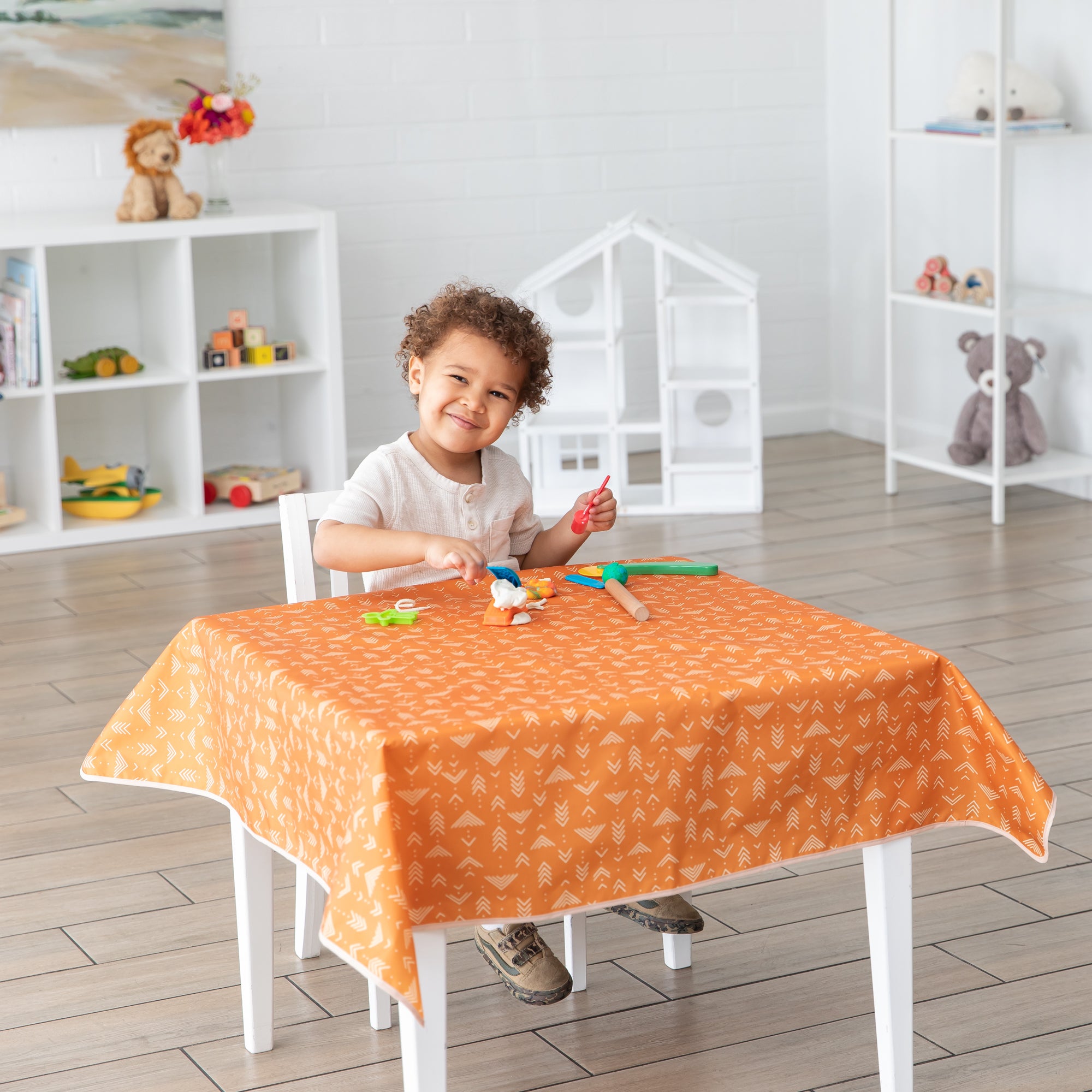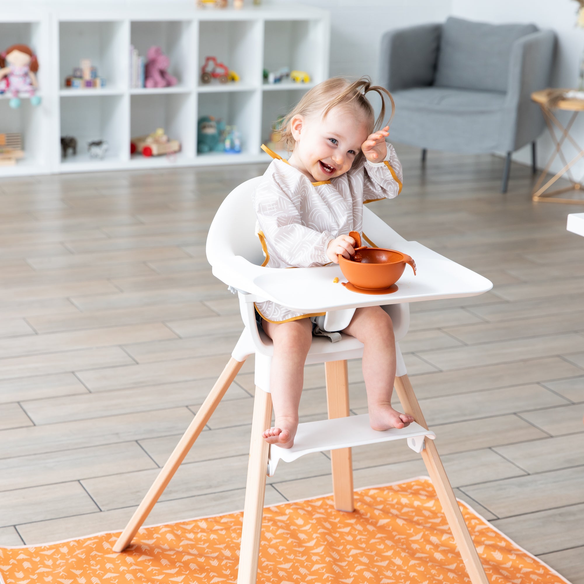 Keep messes from hitting the ground with this splat mat that keeps floors and tabletops clean! Our splat mats are made to protect your floors and tables from mealtime spills and playtime messes. Not just for underneath highchairs. Use it on floors, on tables, or outside. And, it’s great for art projects. Made from the same easy-wipe waterproof and stain-resistant fabric as Bumkins’ award-winning SuperBib. The single-ply construction means no worrying about icky stuff growing between layers of fabric. A generous 42”x42” yet lightweight, it takes up less space in your bag, so you can take it where you need it! Wipeable and machine washable for easy cleaning so you can use it over and over again!