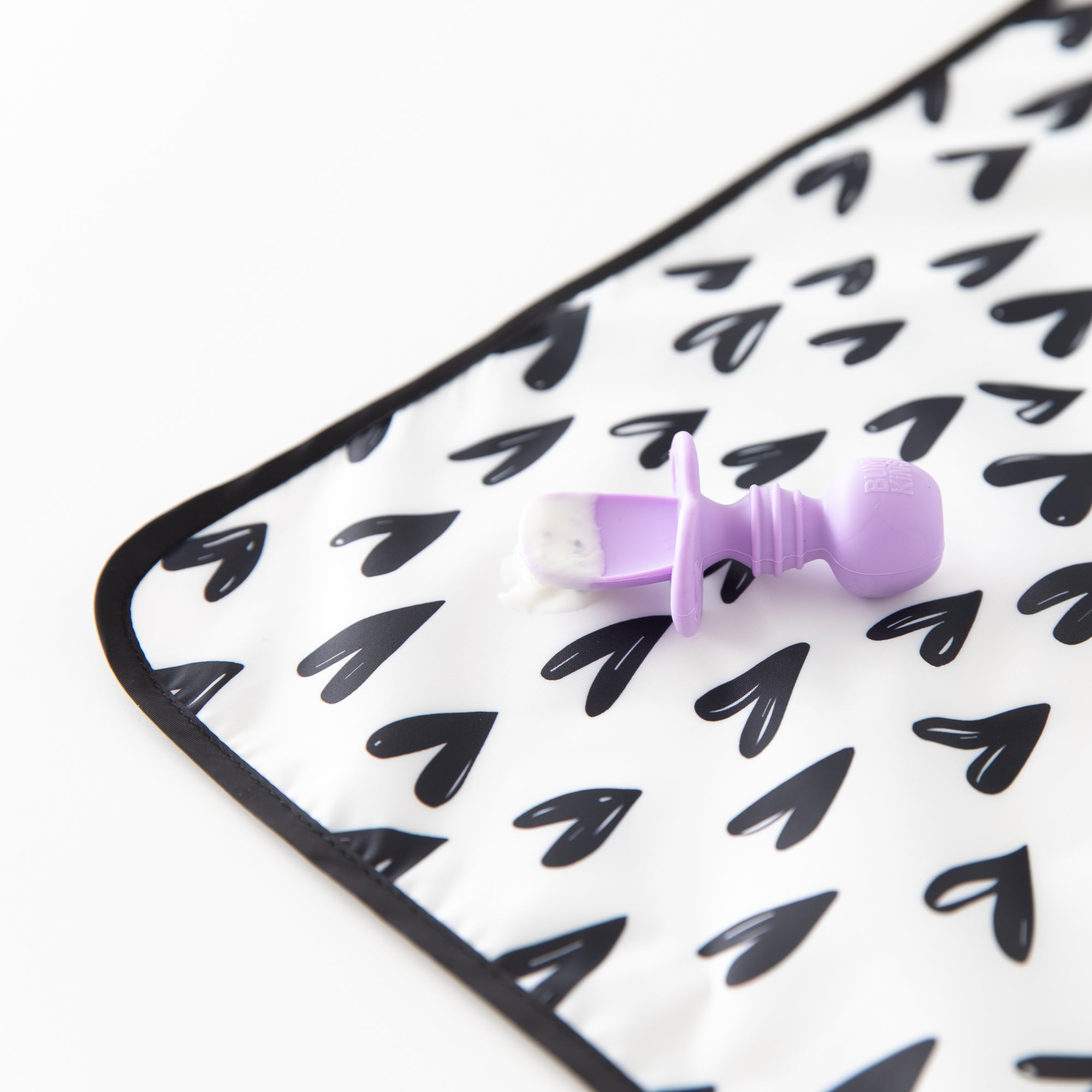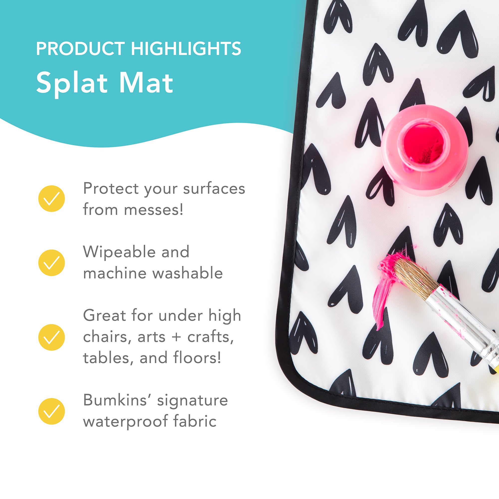 Keep your floors and tabletops clean with this splat mat that's perfect for little ones that love to make a mess! Our splat mats are made to protect your floors and tables from mealtime spills and playtime messes. Not just for underneath highchairs. Use it on floors, on tables, or outside. And, it’s great for art projects. Made from the same easy-wipe waterproof and stain-resistant fabric as Bumkins’ award-winning SuperBib. The single-ply construction means no worrying about icky stuff growing between layers of fabric. A generous 42”x42” yet lightweight, it takes up less space in your bag, so you can take it where you need it! Wipeable and machine washable for easy cleaning so you can use it over and over again!