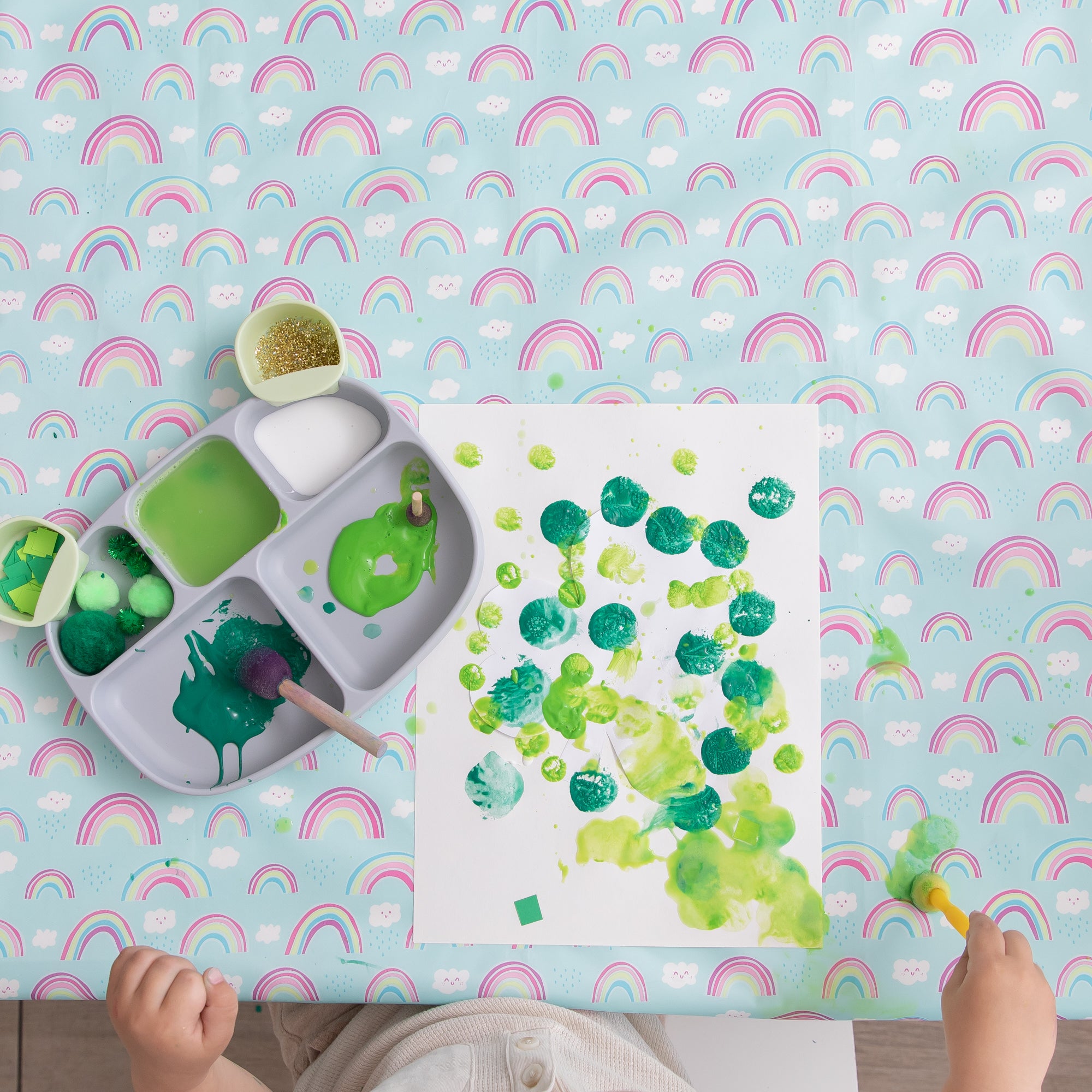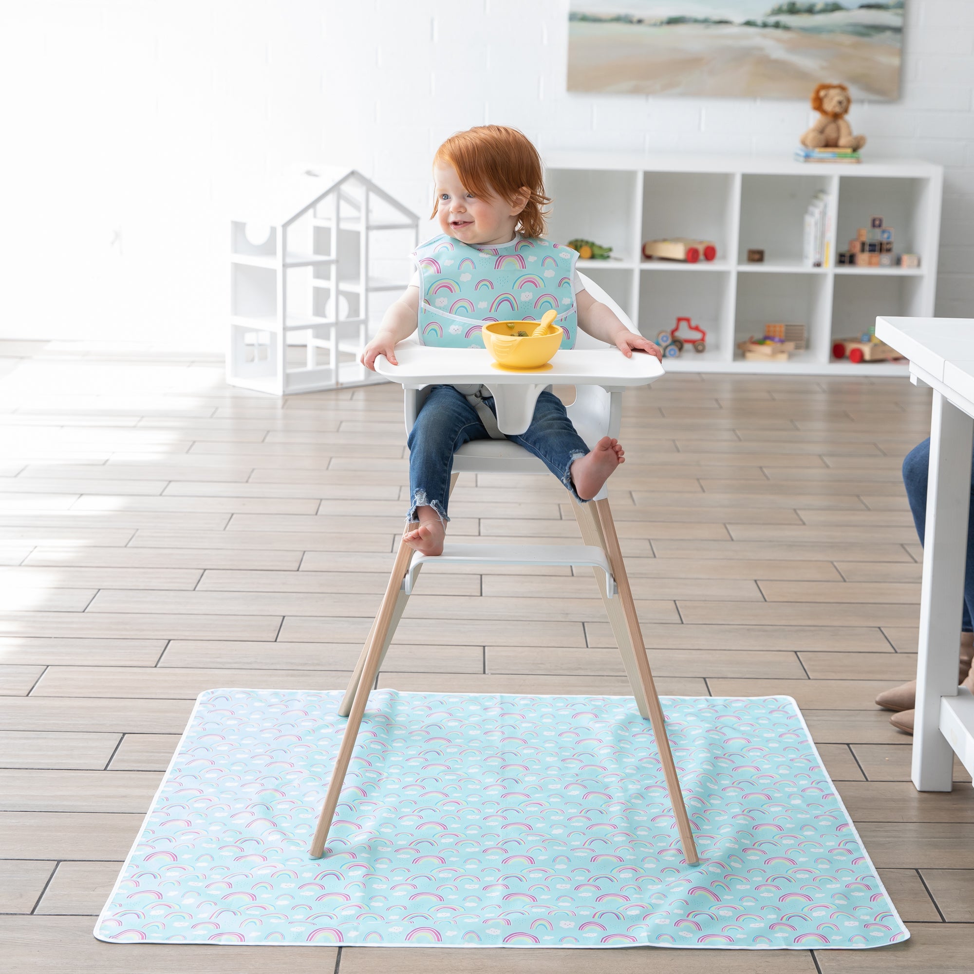 Our splat mats have you covered! They’re made to protect your floors and tables from mealtime spills and playtime messes. Not just for underneath highchairs. Use it on floors, on tables or outside. And, it’s great for art projects. Made from the same easy-wipe waterproof and stain-resistant fabric as Bumkins award-winning SuperBib. The single-ply construction means no worrying about icky stuff growing between layers of fabric. A generous 42”x42” yet lightweight, it takes up less space in your bag, so you can take it where you need it! Wipeable and machine washable for easy cleaning so you can use it over and over again!