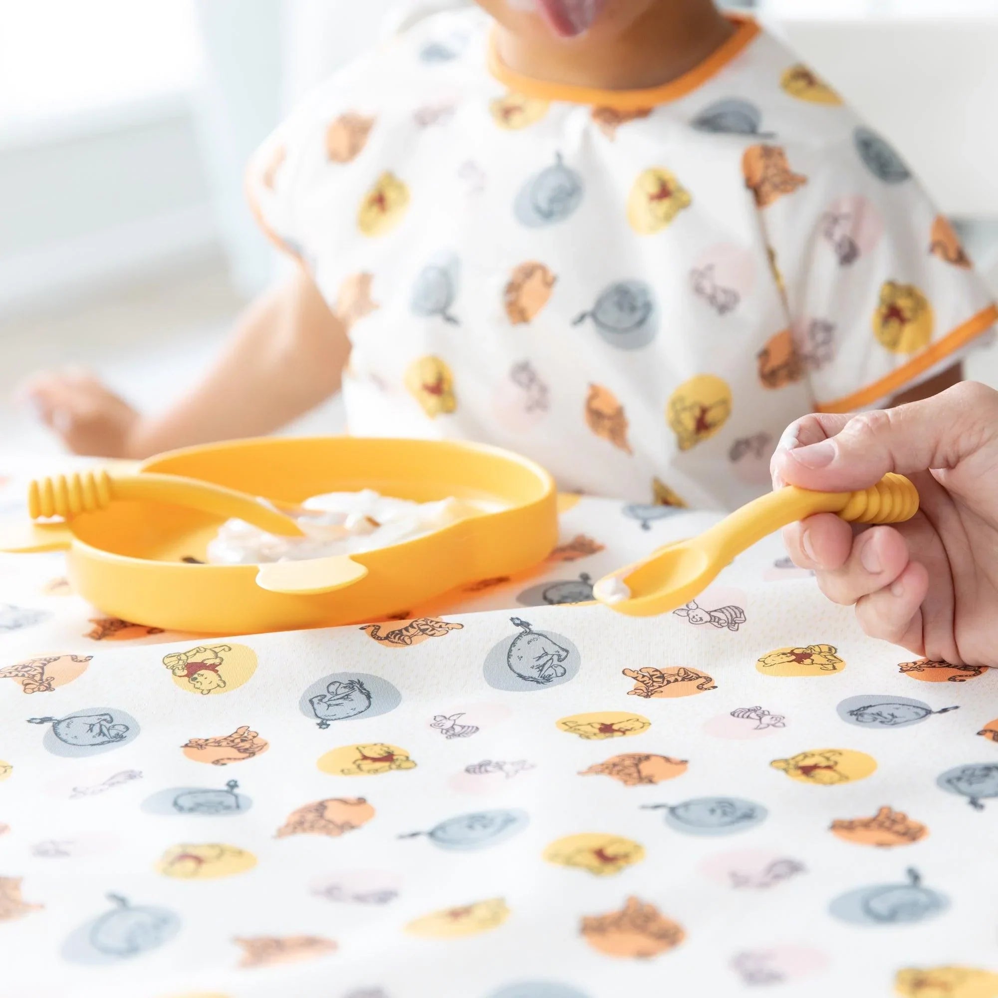 Our splat mats are made to protect your floors and tables from mealtime spills (honey or other foods) and playtime messes. Not just for underneath highchairs. Use it on floors, on tables or outside. And it’s great for art projects. Made from the same easy-wipe waterproof and stain-resistant fabric as Bumkins’ award-winning SuperBib. The single-ply construction means no worrying about icky stuff growing between layers of fabric. A generous 42”x42” yet lightweight, it takes up less space in your bag, so you can take it where you need it! Wipeable and machine washable for easy cleaning so you can use it over and over again!